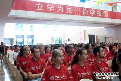 9月7日,中国人民大学苏州校区彩练飘扬,国际学院、中法学院隆重举行2012—2013学年开学典礼。中国人民大学党委书记程天权、副校长伊志宏、苏州工业园区管委会主任杨知评,独墅湖创新区管委会主任夏芳,常务副主任蒋卫明,法国驻上海总领事馆与马赛商学院代表,人大国际学院常务副院长陈甬军,中法学院法方副院长魏让方,以及身着“人大红”T恤的上千位中外师生参加了活动。中国人民大学副书记、副校长王利明主持典礼。