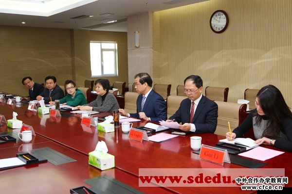 左敏厅长会见代表团一行,双方举行了工作会谈。会谈由孟庆旭总督学主持,厅办公室、国际处有关负责同志参加。
