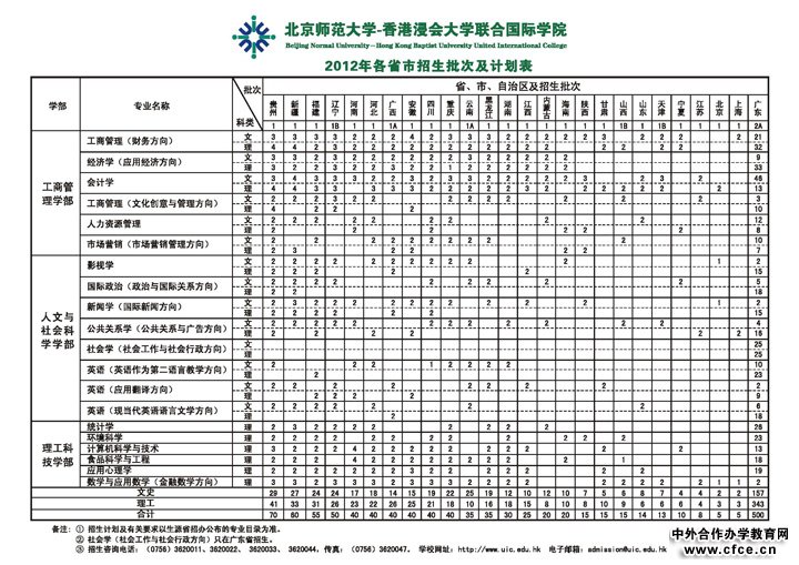 北京师范大学-香港浸会大学联合国际学院2012年普通高校招生章程